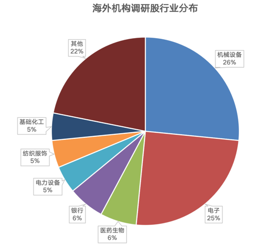 分行业来看,近期境外机构的个股调查主要集中在机械设备和电子两个行业,分别为17只和16只个股。此外,还有医药、生物和银行业的四只股票。热门概念中,机器人、AI算力、芯片等概念动作出现频率最高。